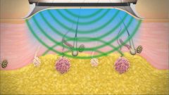 ミラドライは、汗の腺を減らすためにマイクロ波のエネルギーを利用しています。マイクロ波は水分に吸収され熱を発生させる性質があります。汗の腺は水分が多い組織ですから、マイクロ波があたることにことにより熱が発生し、周囲への影響を最小限にしながら選択的に汗の腺を破壊することができます。